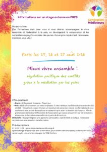 La formation consiste à former au mieux vivre ensemble, à la gestion des conflits :